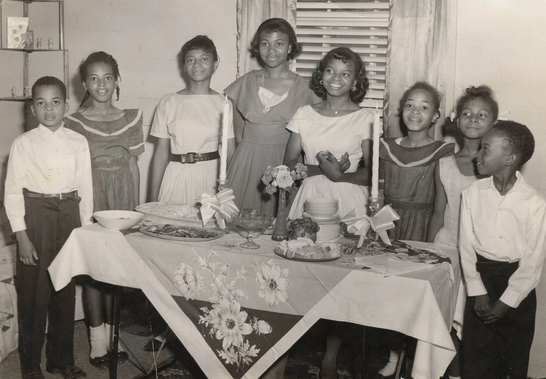 Gwendolyn, Carolyn, Yolanda, and Joan — each learned radical trust from a mother who sewed their uniforms and built their courage. Taught to cook, work, care for younger siblings, and carry responsibility with grace. Attended Saint Elizabeth Catholic School and Holy Rosary Institute, participated in mass meetings as children, and marched when history required it. Watched their mother demonstrate that love means preparation, not protection. They would grow to become women who understood that being “raised to fly” meant having wings strong enough to carry not just themselves but future generations.